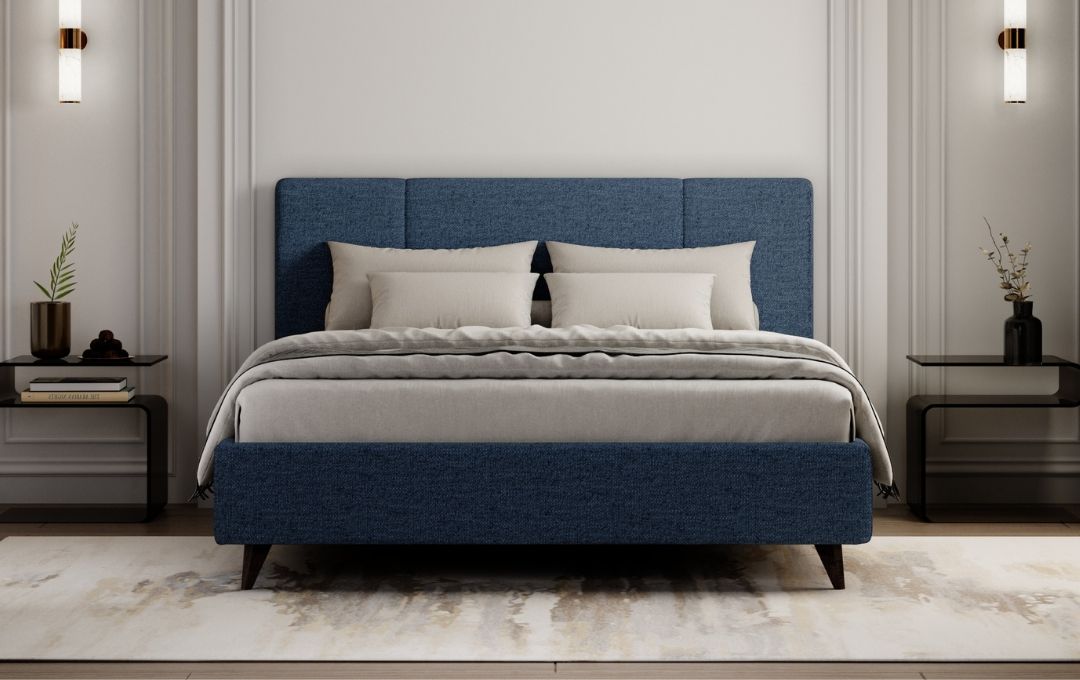 The Dalia Veradea upholstered bed in fabric adds a refined designer touch to your bedroom. Its soft padded headboard features two subtle vertical lines, offering a minimalist and clean look that fits perfectly into both modern and classic interiors.