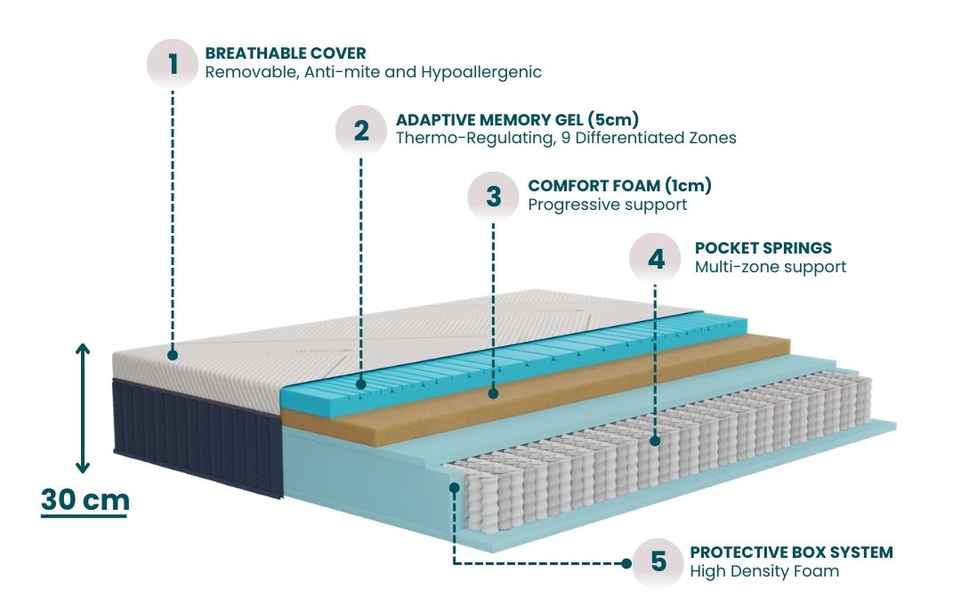 100% Made in Italy, this mattress is a Class 1 Medical Device and OEKO-TEX 100 certified, ideal for anyone looking for a hybrid mattress with springs, a breathable mattress for hot sleepers, or an orthopedic mattress for back pain relief.